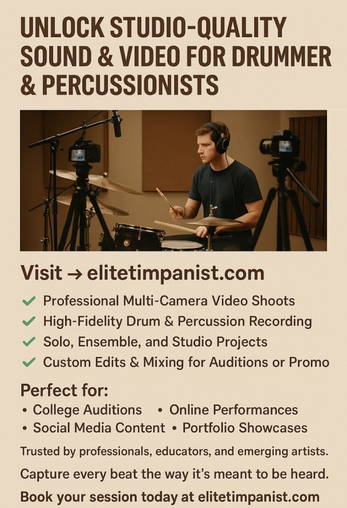 Locally he is performing as a timpanist, percussionist and drumset contract performer.